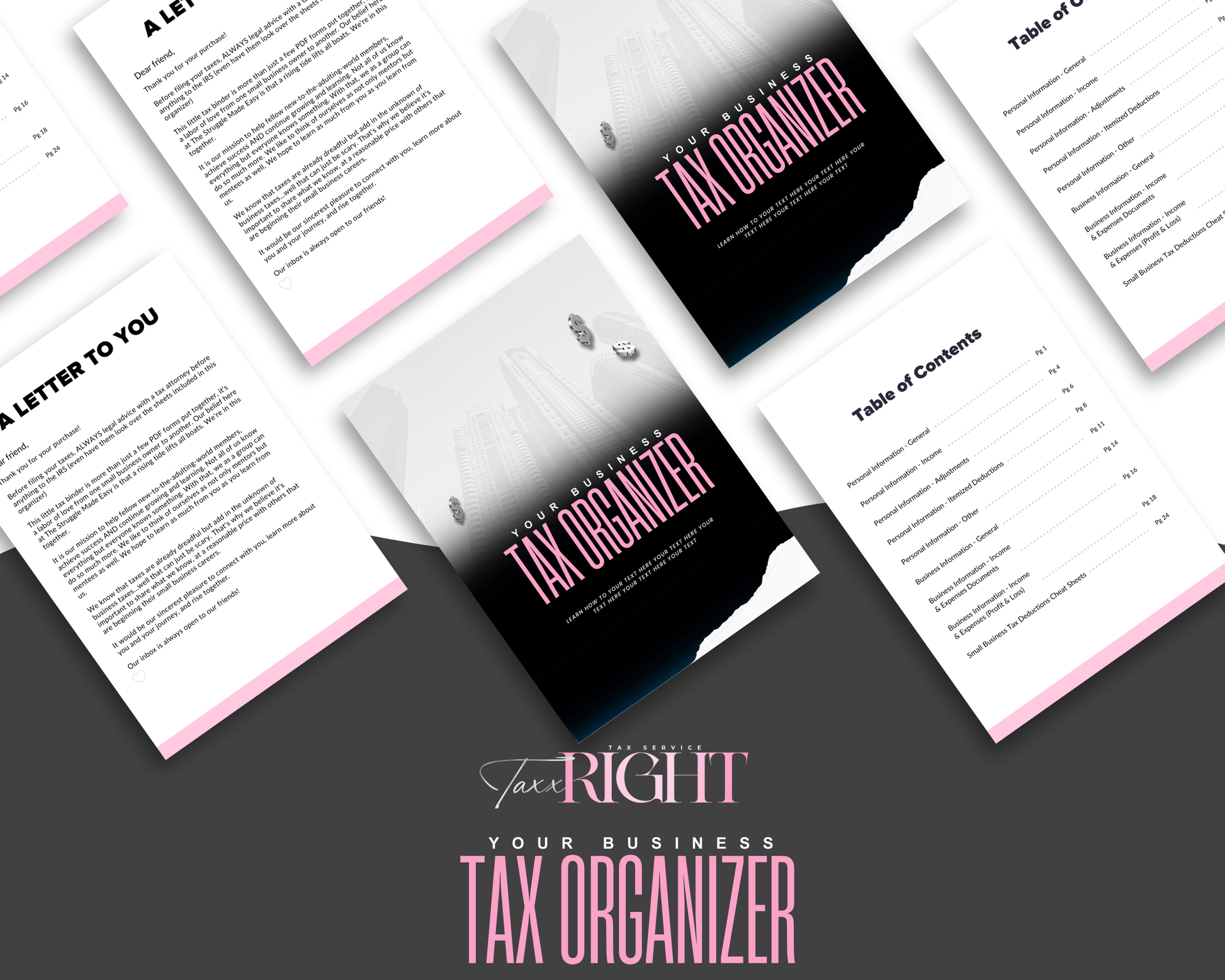 Simplify your business finances with Your Business Tax Organizerโthe ultimate digital tool designed to help entrepreneurs, freelancers, and small business owners stay organized and stress-free. This easy-to-use organizer helps you track income, expenses, deductions, and more, so you're fully prepared when tax time rolls around.